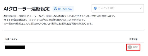 Xサーバーには生成AIによるサイトデータの無断利用を防止する「AIクローラー遮断設定」機能があります。